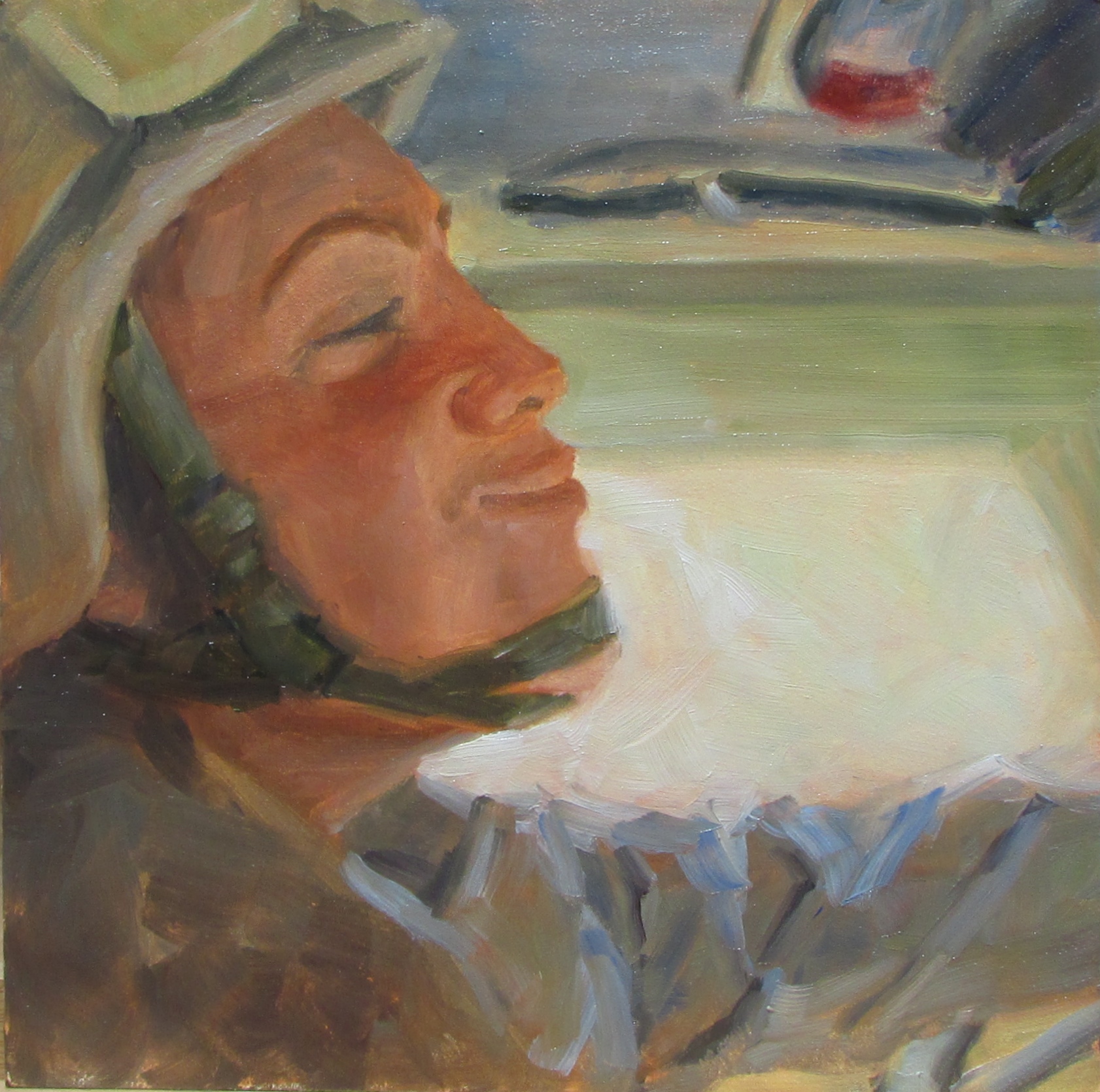 This young man with attitude is my youngest son. This is painted from a photo taken while he was on deployment in Afghanistan. In spite of the terrible situation and danger of this deployment and this job, it must be quite a cool feeling to be able to drive one of these big rigs. It looks like he was enjoying himself, at least at this moment. Thank God, he came home safely!