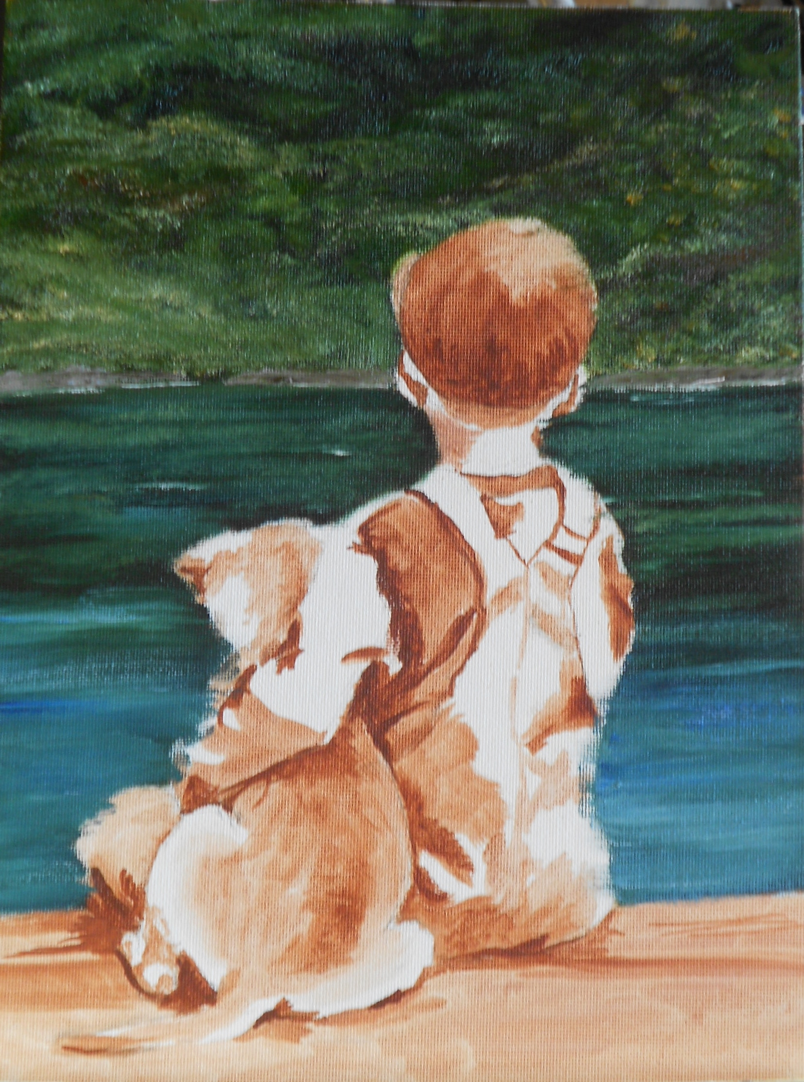 I am actually quite taken with this little painting. There is something very pleasing about its simplicity. To try a painting using just one color is a great process for beginners. I even think that this practice is helpful for more advanced painters. This is useful In many ways… like helping one to recognize the values in the painting. After doing this you could more easily adjust your values to emphasize different areas of interest or intensity. This can also help one to see the unnecessary details of their subject. This is also good practice for how one might do an underpainting of their subject. Many artists will do a complete, thinned down, two tone painting like this before they add their color. That way they can concentrate on adding color without thinking about the value as well. This is often helpful when the subject matter has a lot of detail. But this is not a necessity, just a matter of preference. I have done some of these underpaintings and found them very helpful. But there are many times that I just want to be more spontaneous.