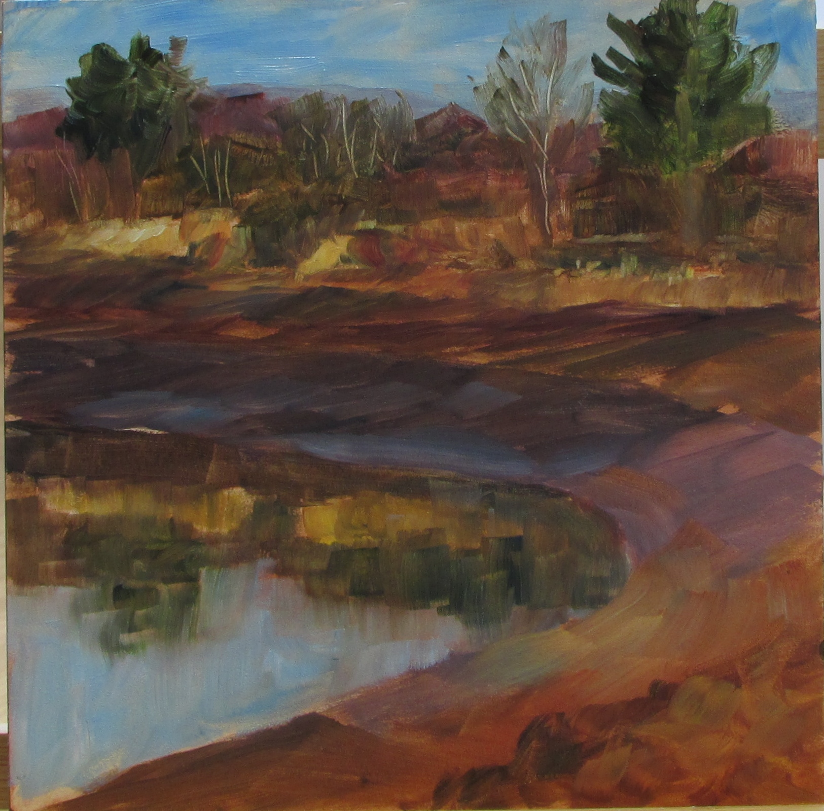 This is a 6×6 painting, and it is the first painting that I have done on Gesso board. I have been wanting to try this since my first post. I read in Carol Marine’s book that she uses it and likes it. There are several artists whose paintings have a smooth flowing brush stroke style and I have been unable to get that in my paintings. It seems like they must either use gesso board or a smoother canvas than I do. To save on cost, I have given into using an inexpensive canvas board most of the time for these small practice pieces. But it does not help to practice what doesn’t work for you. I need to begin either using Gesso board or prepping my canvas in a different way to create a smoother finish. I have recently found another brand of canvas board that is not too expensive and does have a wonderful smooth coating. (the brand is Art Advantage) I cannot get it here in Juneau, and shipping is always expensive to Alaska so I have not used it on a regular basis. But I am beginning to think I should. I will have to get a bunch when I travel back to Maine next month.