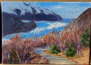 I had someone come into the Juneau Artists Gallery where I have some of my work. They purchased this little Halibut mini (on the left) and wanted to know if I would paint them a larger one just like it. Of course I did. This was painted from a reference photo I took after one of our fishing trips.