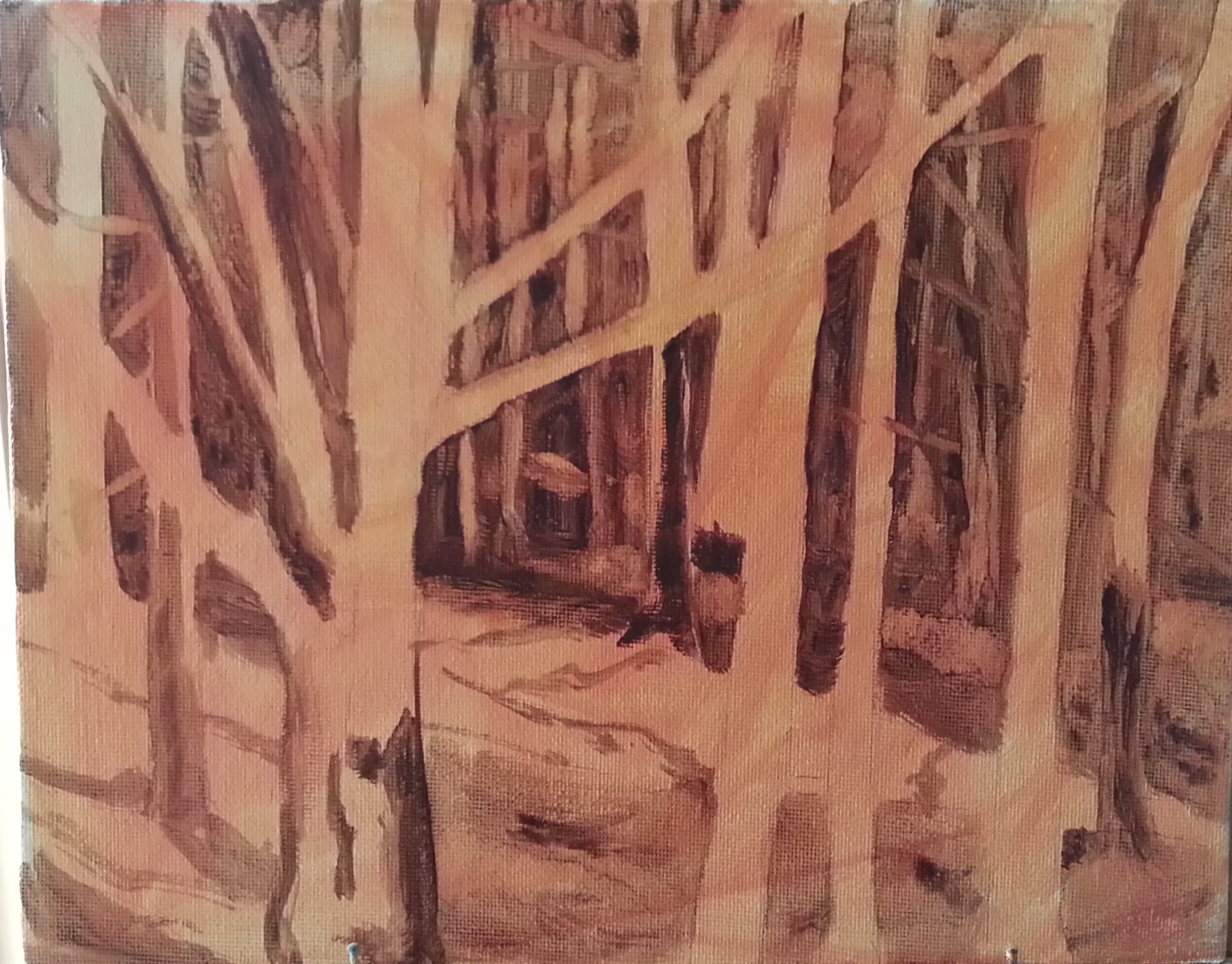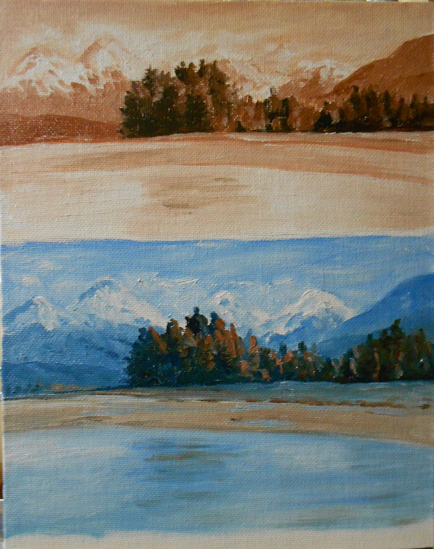 I am actually quite taken with this little painting. There is something very pleasing about its simplicity. To try a painting using just one color is a great process for beginners. I even think that this practice is helpful for more advanced painters. This is useful In many ways… like helping one to recognize the values in the painting. After doing this you could more easily adjust your values to emphasize different areas of interest or intensity. This can also help one to see the unnecessary details of their subject. This is also good practice for how one might do an underpainting of their subject. Many artists will do a complete, thinned down, two tone painting like this before they add their color. That way they can concentrate on adding color without thinking about the value as well. This is often helpful when the subject matter has a lot of detail. But this is not a necessity, just a matter of preference. I have done some of these underpaintings and found them very helpful. But there are many times that I just want to be more spontaneous.